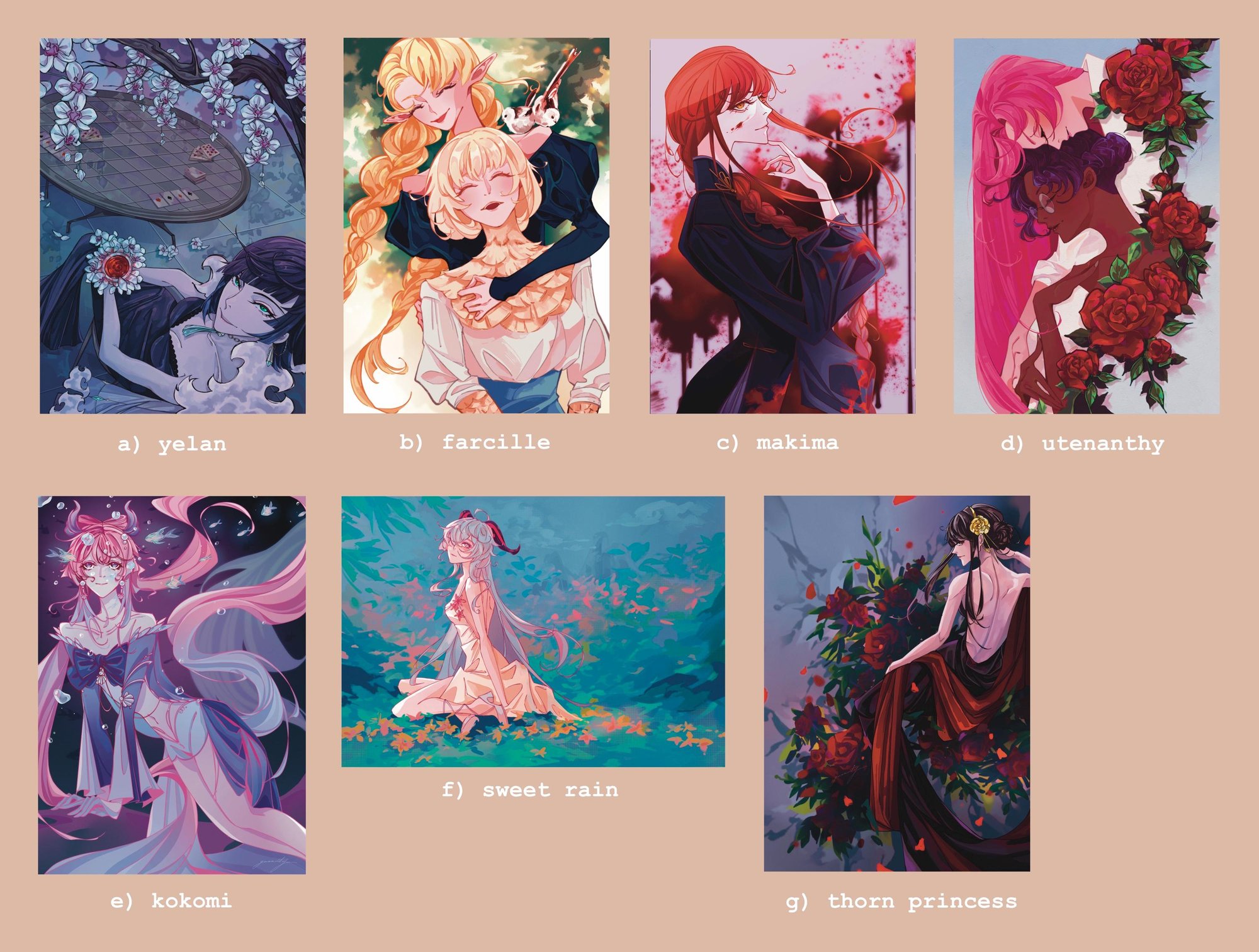various art prints of different fandoms! a6 prints drawn by me!