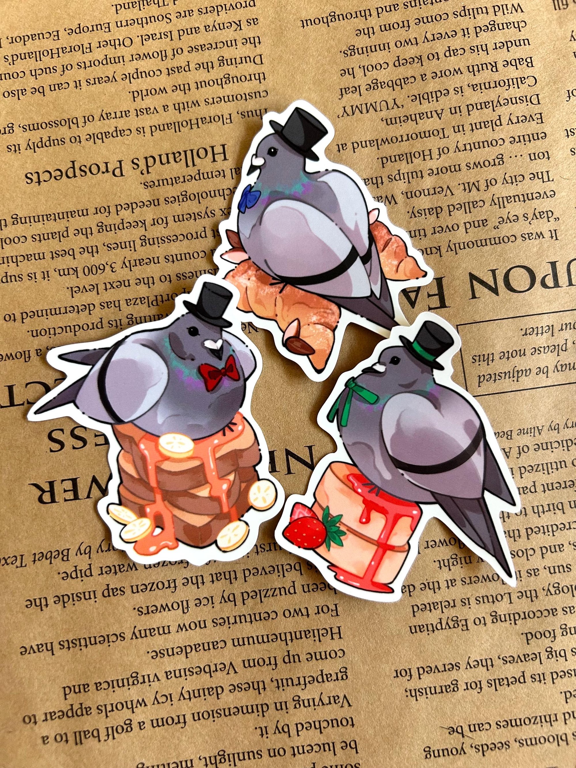 Stickers of Sir Toast, Dr Pancake and Mister Crossiant the gentle-pigeons :)