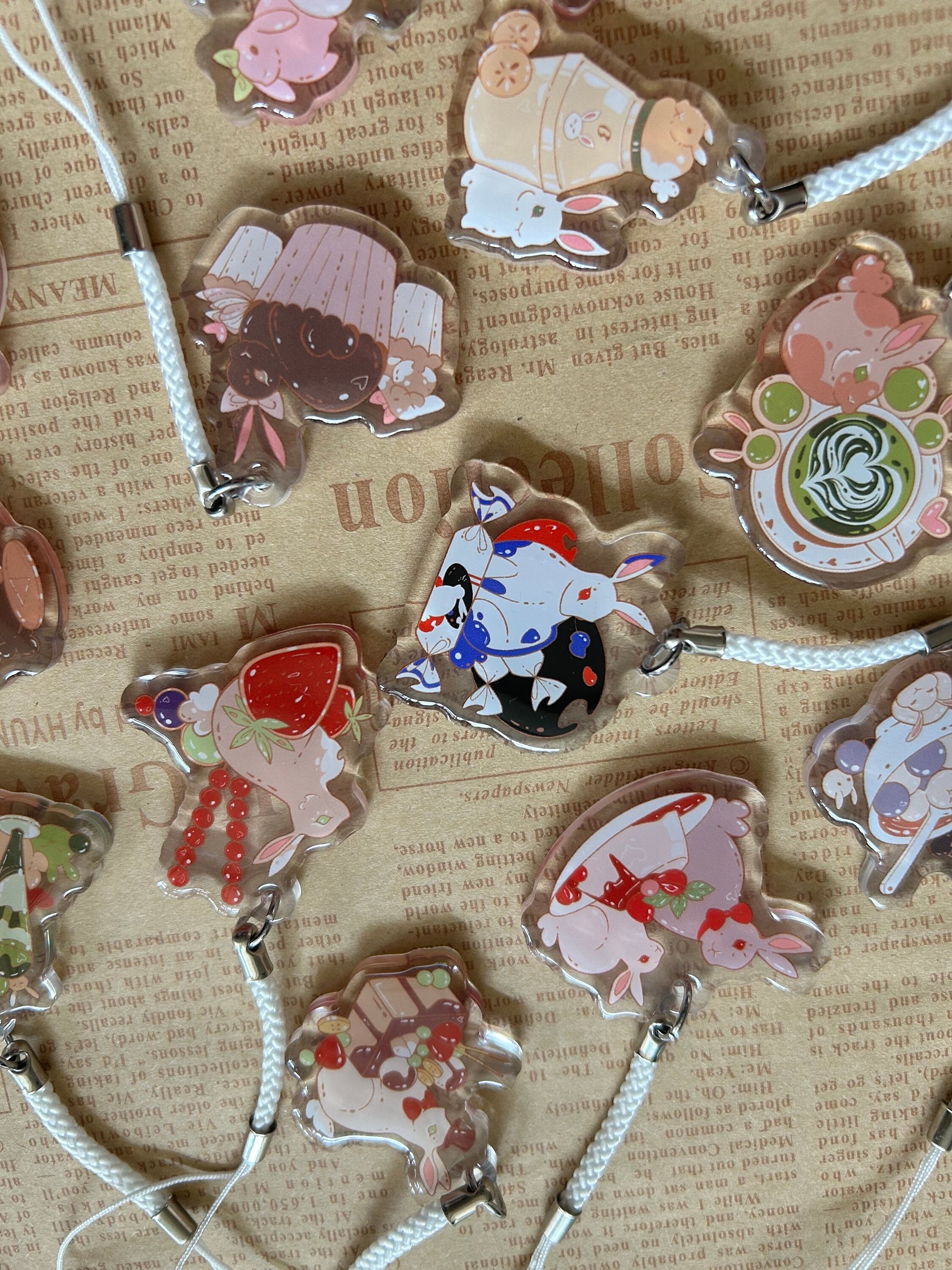 Foodie bunnies - acrylic phone charm
