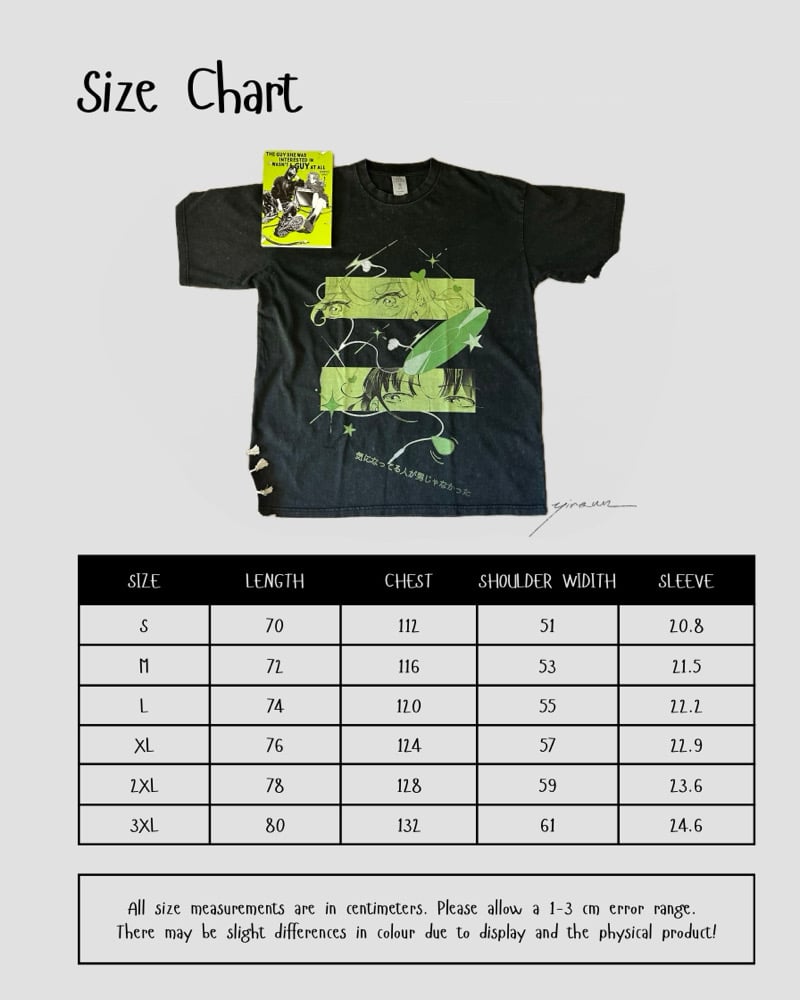 note* The cut of the shirt is similar with some minor measurement differences compared to the first batch, sleeves are less wide.